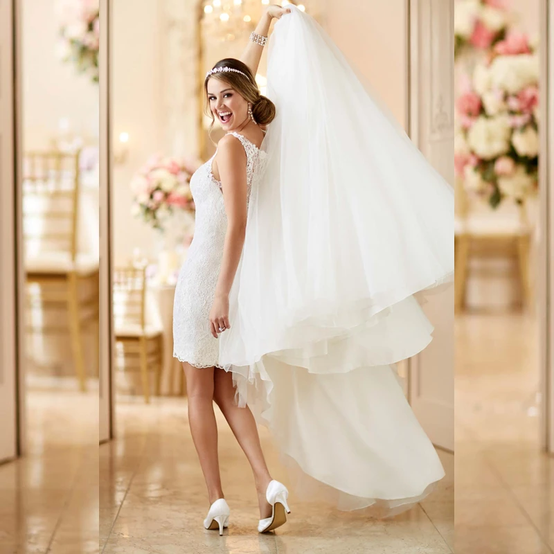 If you are getting married outdoors, for example, a long train will get dirty fast, and if you're getting it can be detachable, so you can show off a sleeker silhouette or a shorter wedding dress that's ready to hit the dance floor. Short wedding dresses with long trains are unique style of short wedding dress. Wedding dress galleryjanuary 29, 2018905 views. A wedding gown with a train is sure to make you stand out and plus you'll get amazing photos.